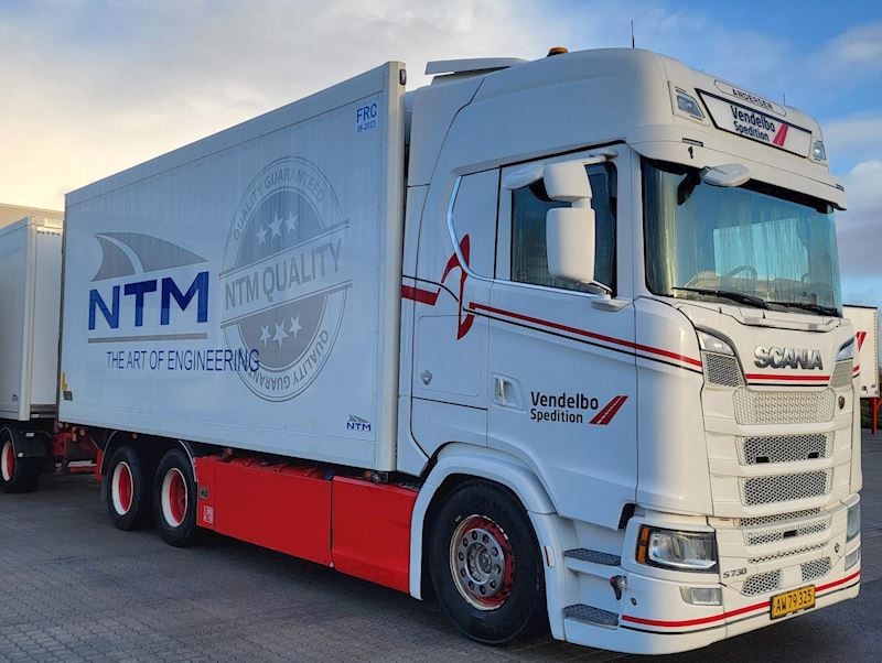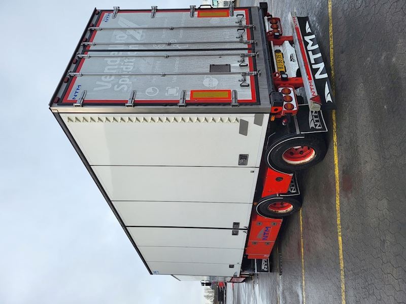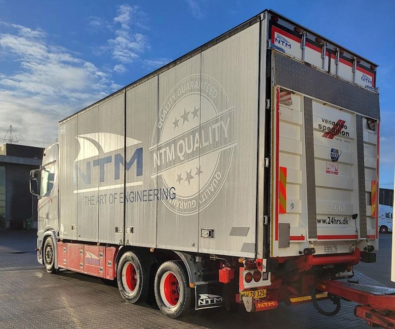 Pæn og velholdt Scania S730 med NTM foldedøre med fuld sideåbning samt tilhørende anhænger fra 2016.
